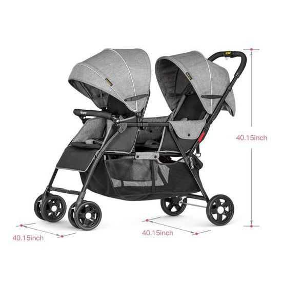 besrey Poussette double légère avec sièges réglables, roues amortisseurs et housse de pluie
