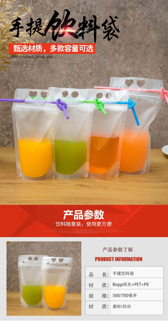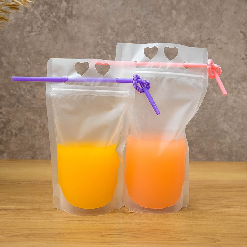 Sac de boisson jetable givré Transparent amour trou rond sac d'emballage liquide Portable