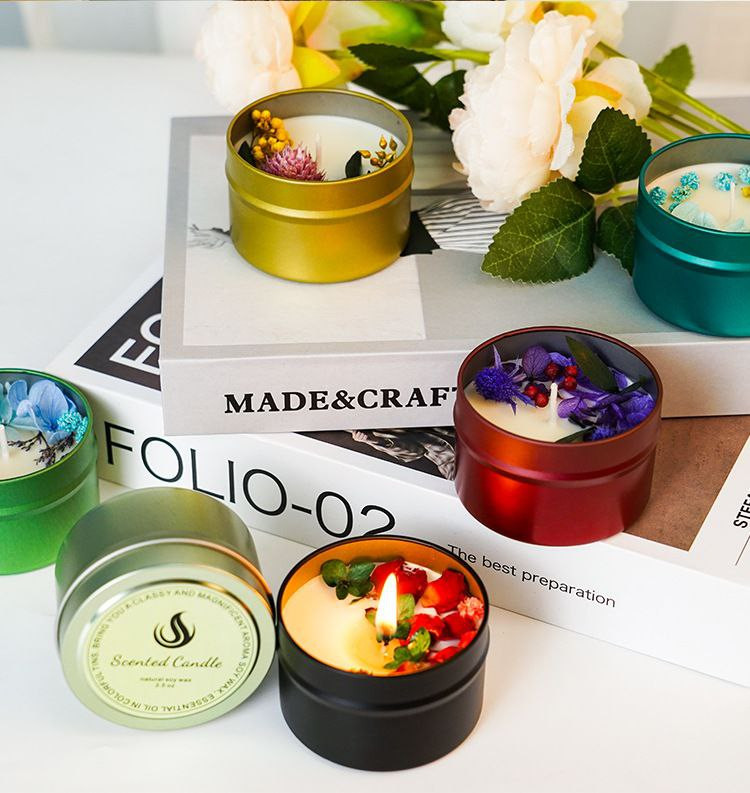 Bougie d'ambiance de fleurs séchées personnalisée, cadeau d'anniversaire de mariage, ensemble de couleurs, bougie d'aromathérapie haut de gamme pour yoga