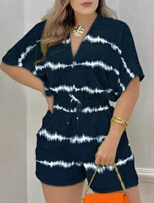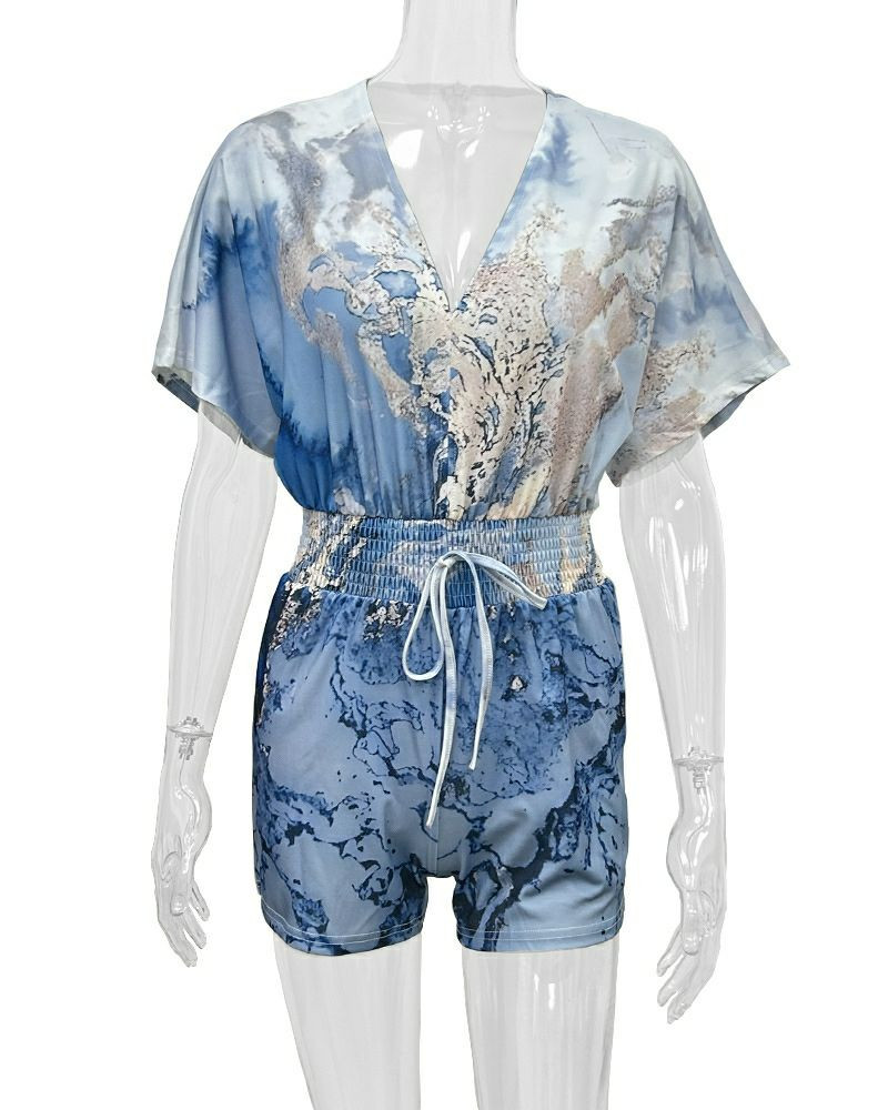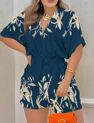 Combinaison d'été imprimée pour femmes, mode décontractée, combishort, col en v, élégante, barboteuse, manches courtes