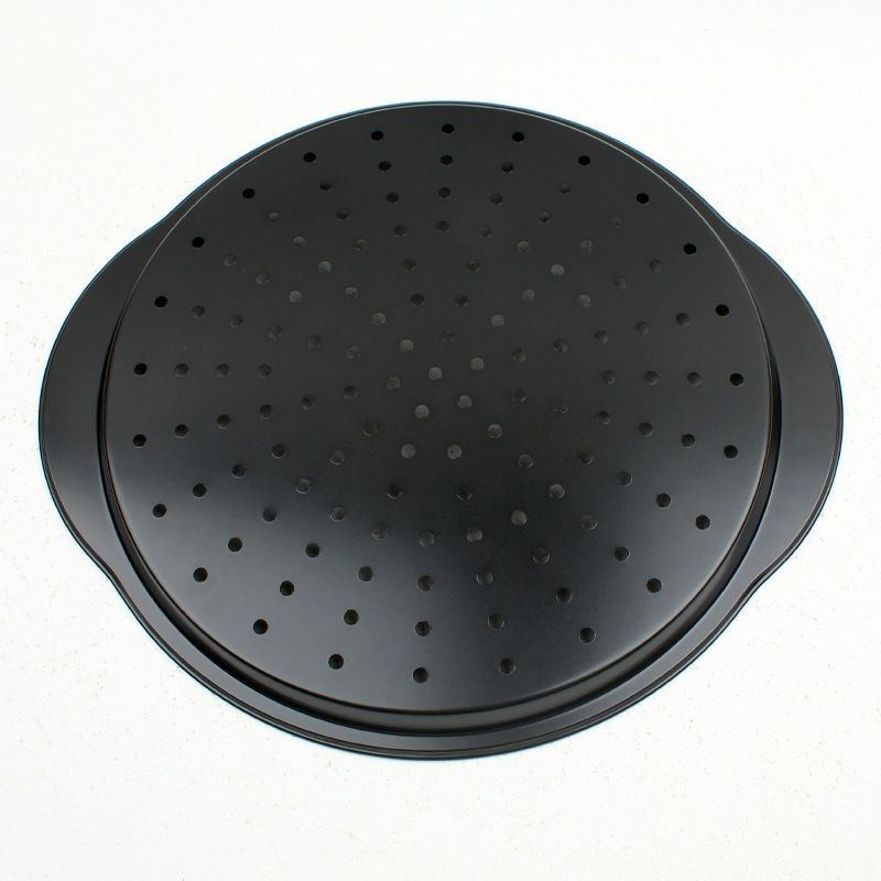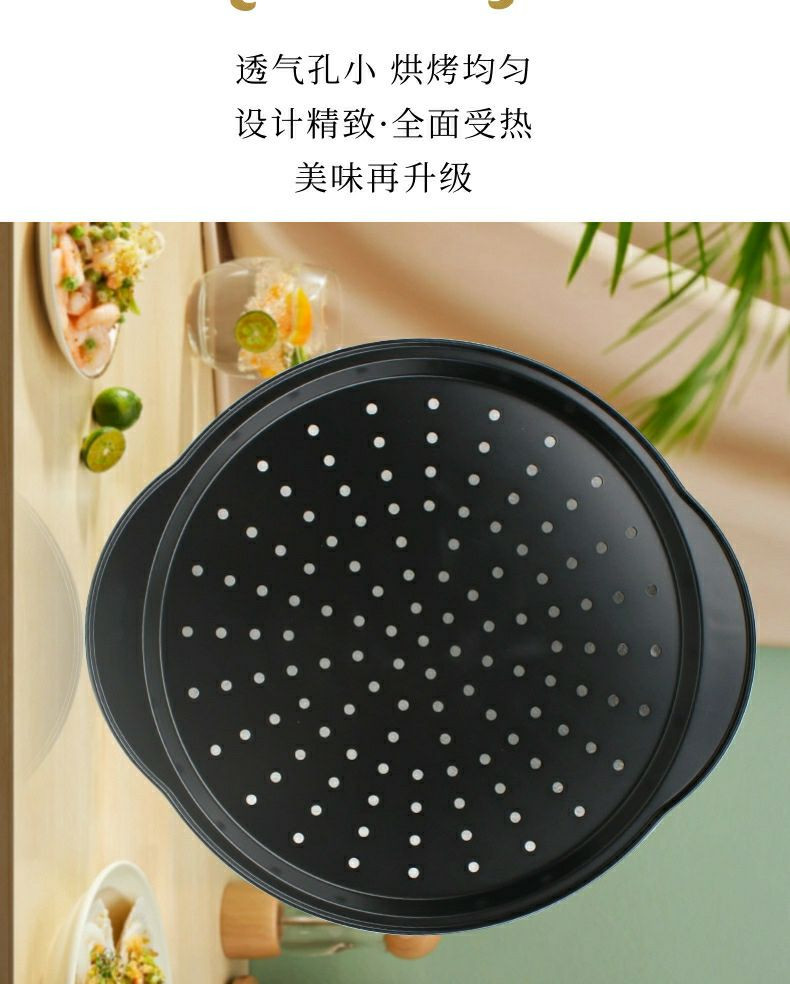 Nouveau Plateaux à Pizza en acier au carbone, plateaux de cuisson antiadhésifs avec trous et poignées pour la cuisine domestique, four à micro-ondes de boulangerie binaural à pizza avec plateau de boulangerie