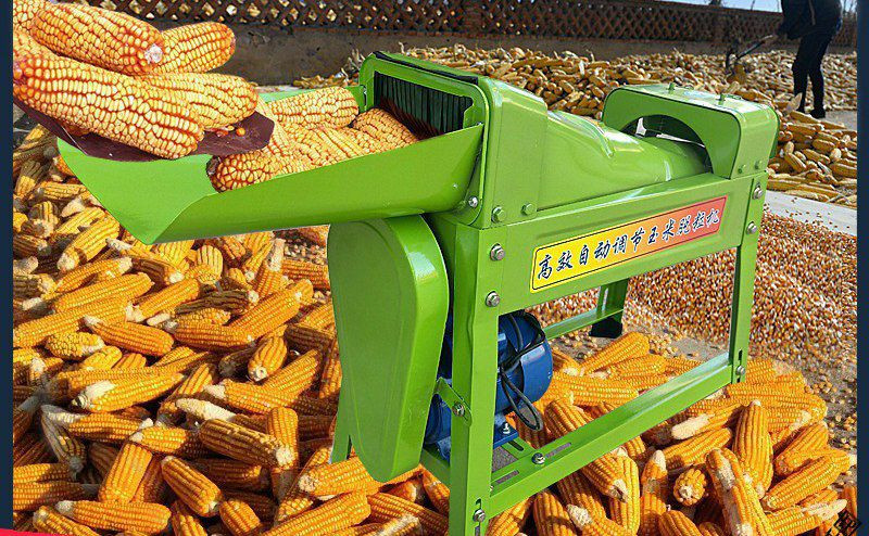 Une décortiqueuse et batteuse de maïs, également appelée égreneuse à maïs. Il s'agit d'une machine agricole qui permet de séparer les grains de maïs de l'épi.