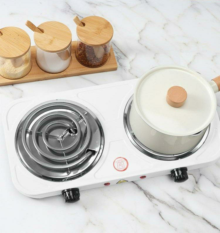 Plaque de cuisson électrique portable à double foyer.